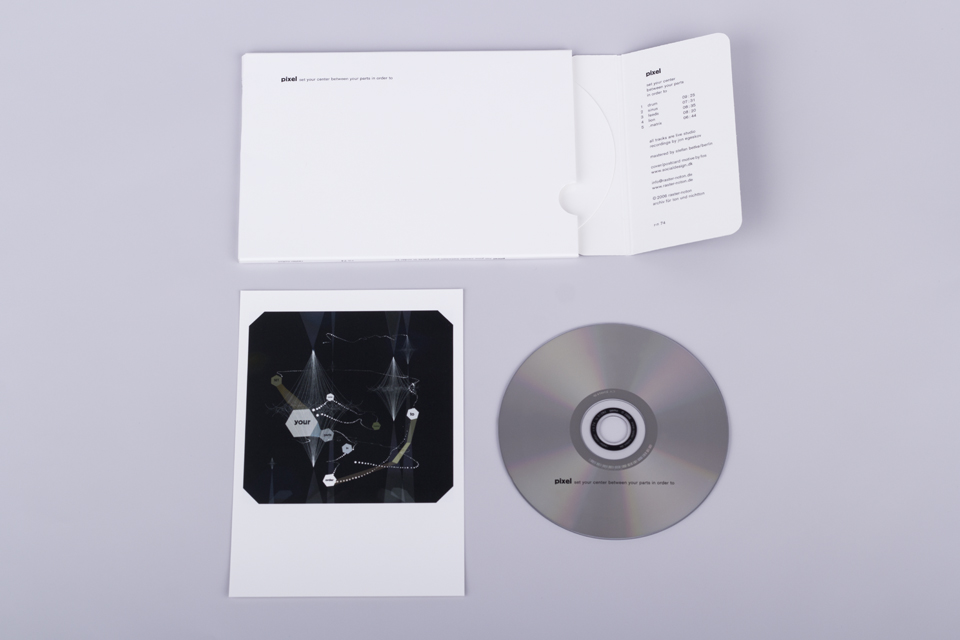 »set your center between your parts in order to« is the highly anticipated follow-up release to the stellar debut »display« by danish artist pixel aka jon egeskov. as a professionally trained jazz musician with academic credentials, egeskov furthers his journey into the realm of minimalistic electronic music. with »parts«, he continues merging digital (sound) artifacts with subsonic basslines in a rather allusive manner. inspired by african conflict and cross rhythms, pixel examines the potential of simultaneous yet independent pulsating metres. he fuses polyrhythmic and polymetrics with the signature raster-noton sound vocabulary and thus connects his work to the here and now.