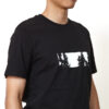 silkscreen print (pantone cool gray 1c), black organic cotton t-shirt.